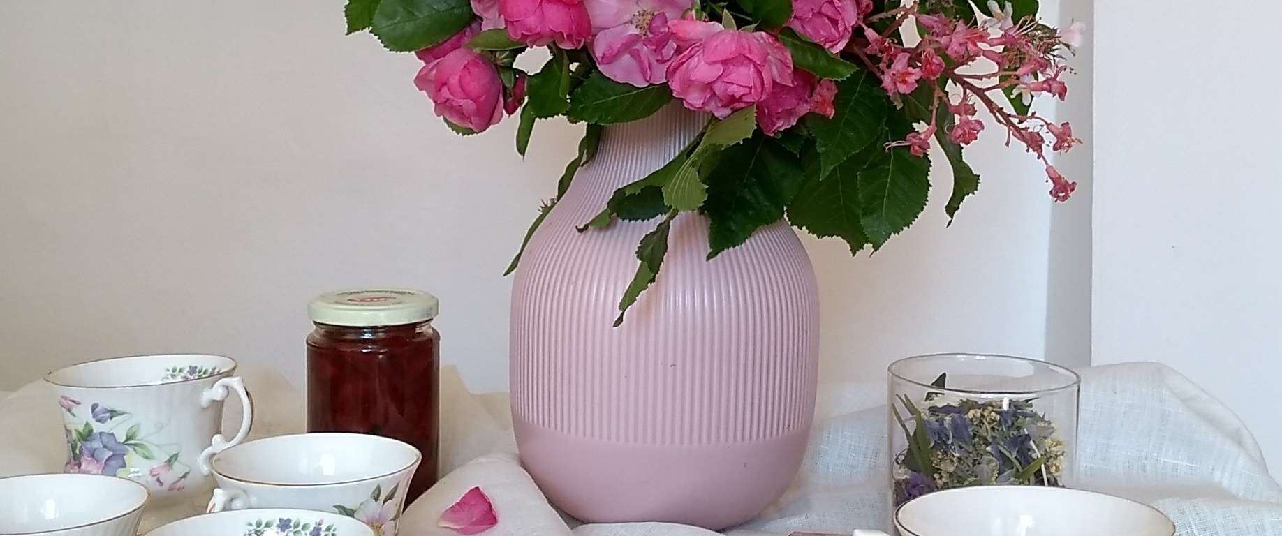 Un bouquet tutto rosa per gli animi romantici o semplicemente per godere de “la vie en rose”. Ho scelto tre tipologie di fiori che sbocciano in Maggio : le rose, fiore di maggio per eccellenza, il fiore dell’albero dell’ippocastano e la sinuosa Kolkwitzia. Pochi elementi per un voluttuoso risultato !
