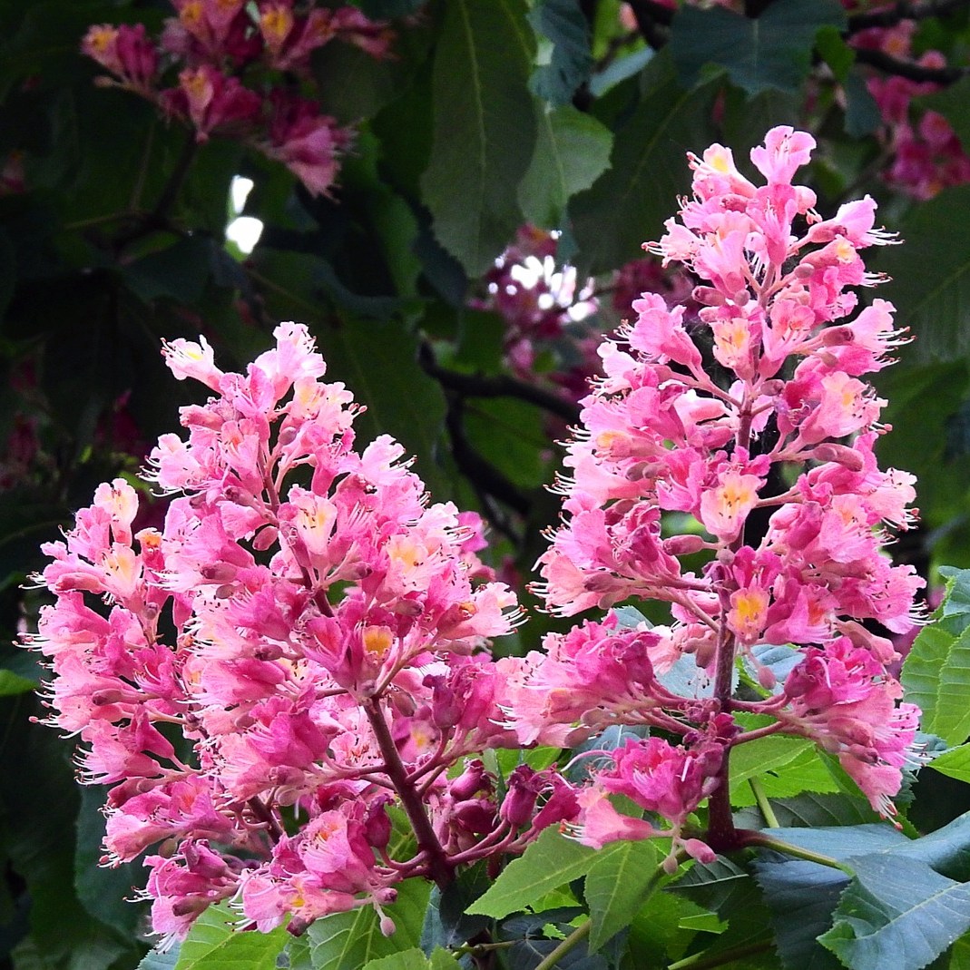 L’Ippocastano è bellissimo in ogni stagione. In primavera fiorisce sontuosamente : i suoi grandi fiori a forma cilindrica (possono raggiungere i 20 cm!) di colore rosa intenso o bianco ornano l’albero come fossero candelabri, attirano le api e il mio sguardo ammirato. Le sue grandi foglie palmate offrono ombra d’estate e pennellate di colore brunito in autunno. L’ippocastano produce anche dei frutti : grosse capsule rotonde e verdastre, piene di aculei come dei ricci. Durante l’inverno i frutti cadono e si aprono : al loro interno si trova il grosso seme, simile a una castagna. Si tratta di “castagne matte” NON commestibili! Quindi attenzione a non confonderle con le castagne edibili, del Castagno per l’appunto.
