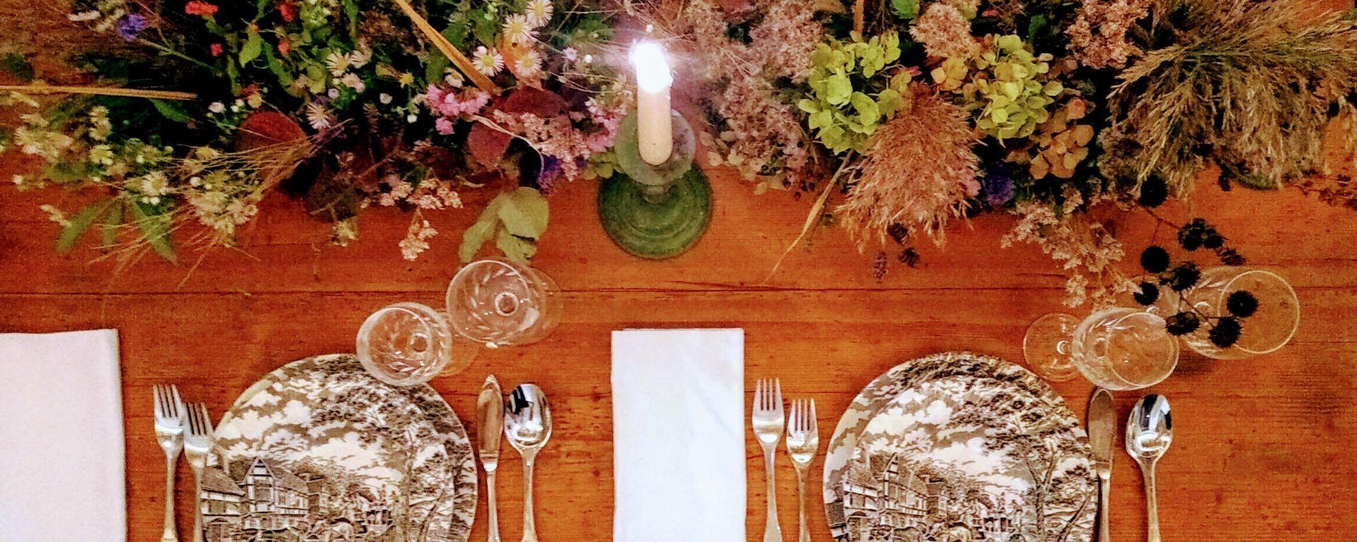 Allora la soluzione è semplice : un centro tavola allungato, modulare, ecologico, sontuoso.