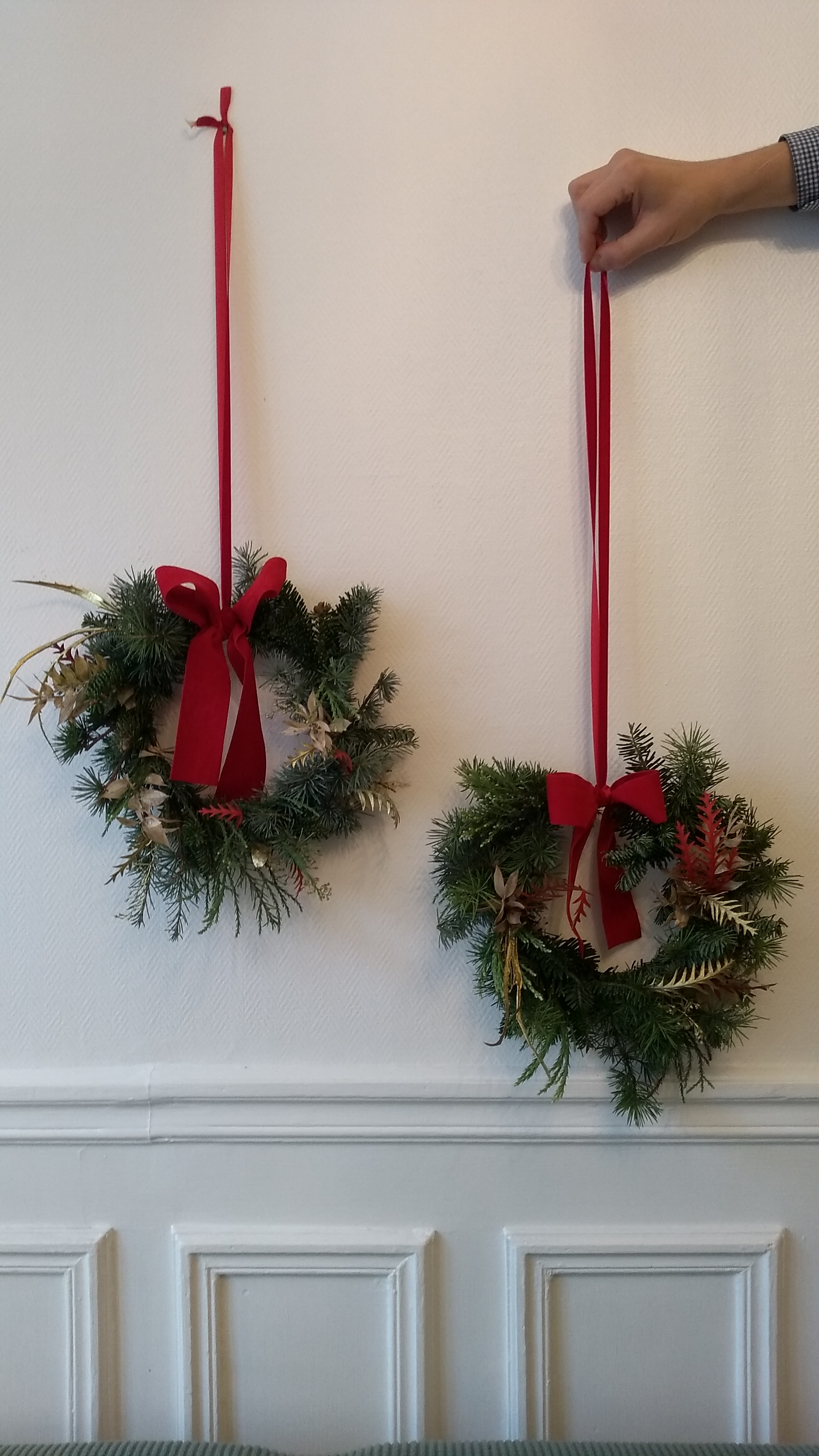 Se volete regalare la ghirlanda o appenderla alla porta d’ingresso potete aggiungere un messaggio benaugurante per il nuovo anno (le mie ghirlande le ho appese al portone del palazzo in cui vivo e ho aggiunto un bigliettino in cartoncino con un augurio di buon Natale : guardate la foto qui sotto!).