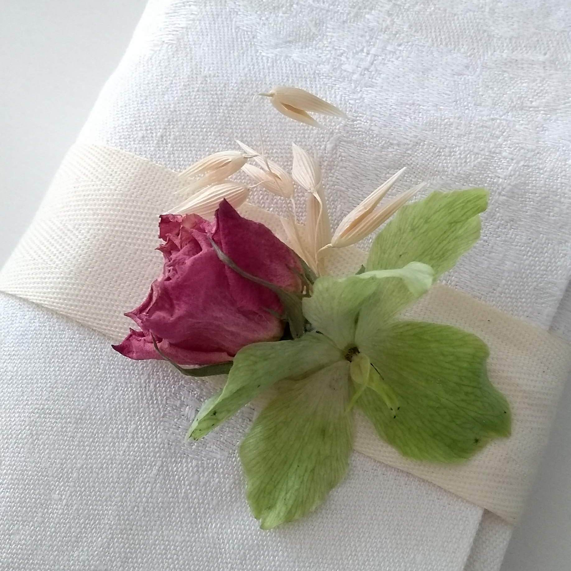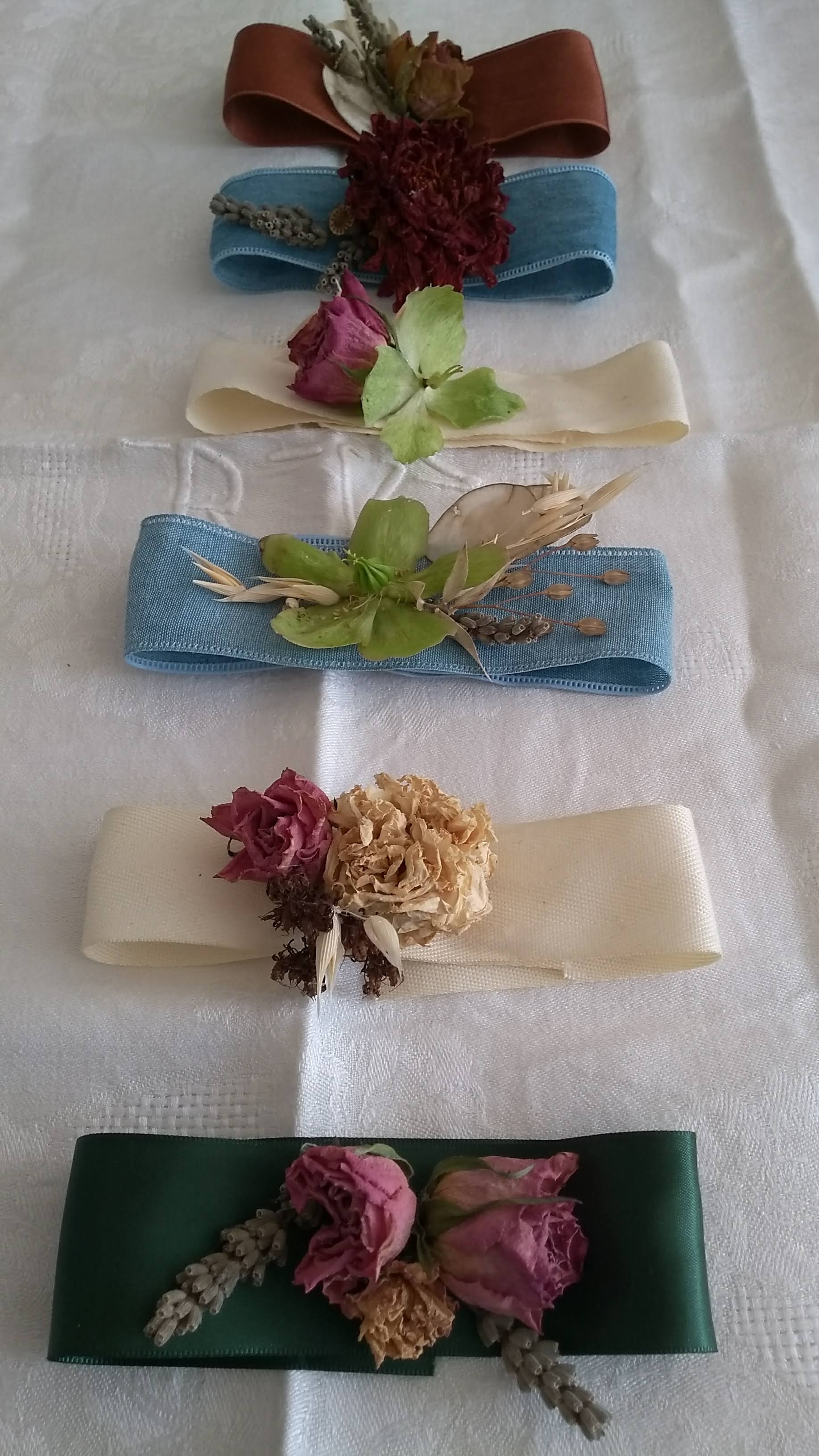 - Per questo tipo di realizzazione, se utilizzate fiori freschi, premuratevi che siano piuttosto resistenti e confezionate i vostri fermatovaglioli/braccialetti all’ultimo momento per garantire una maggior tenuta.