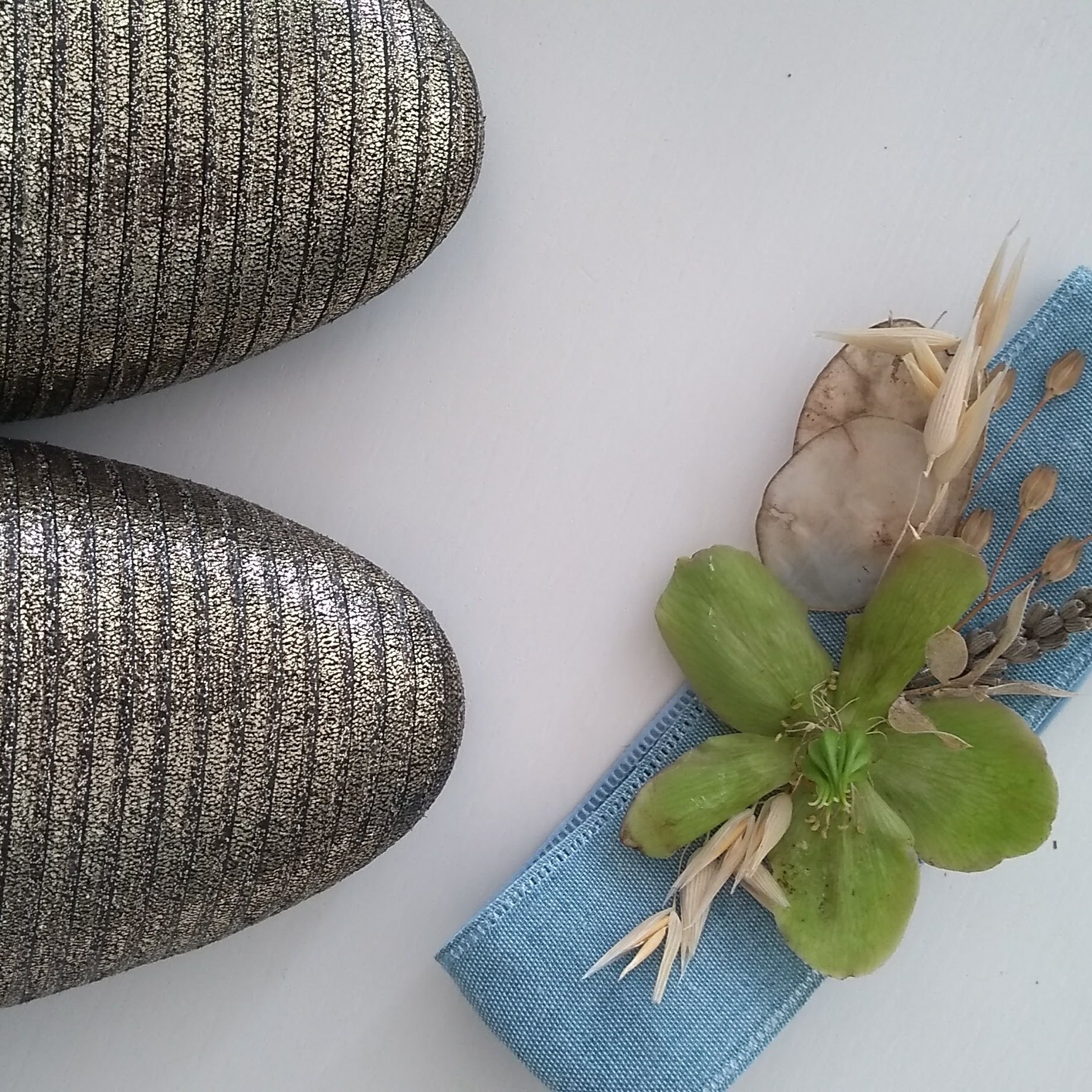 - Fiori essiccati (io ho utilizzato fiori essiccati da me tra cui dalie, lavanda, peonie, garofani, roselline, avena, lunaria, semi di papavero, pungitopo…) o fiori freschi di stagione piuttosto resistenti (io ho utilizzato dell’elleboro)