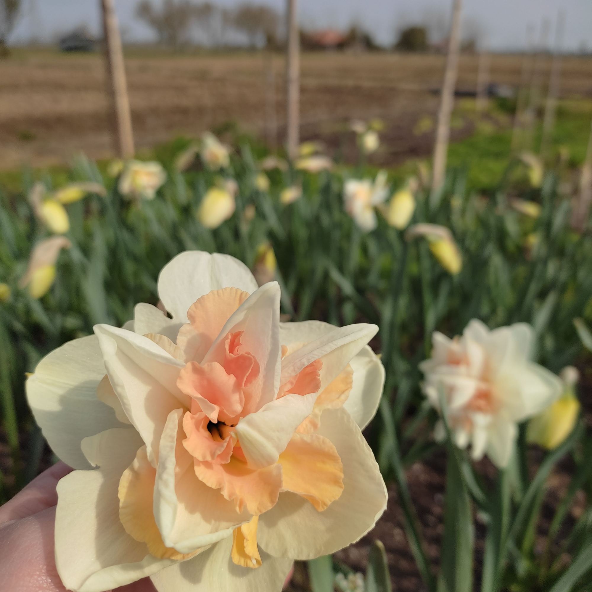 - 3 steli di Narciso bianco panna dal cuore albicocca (Narciso “Delnashaugh“)