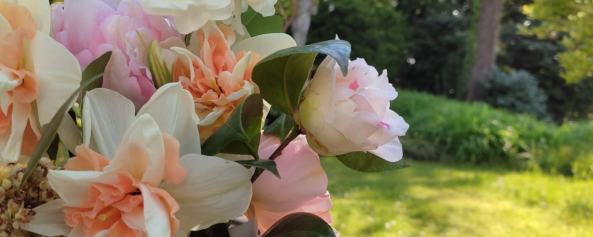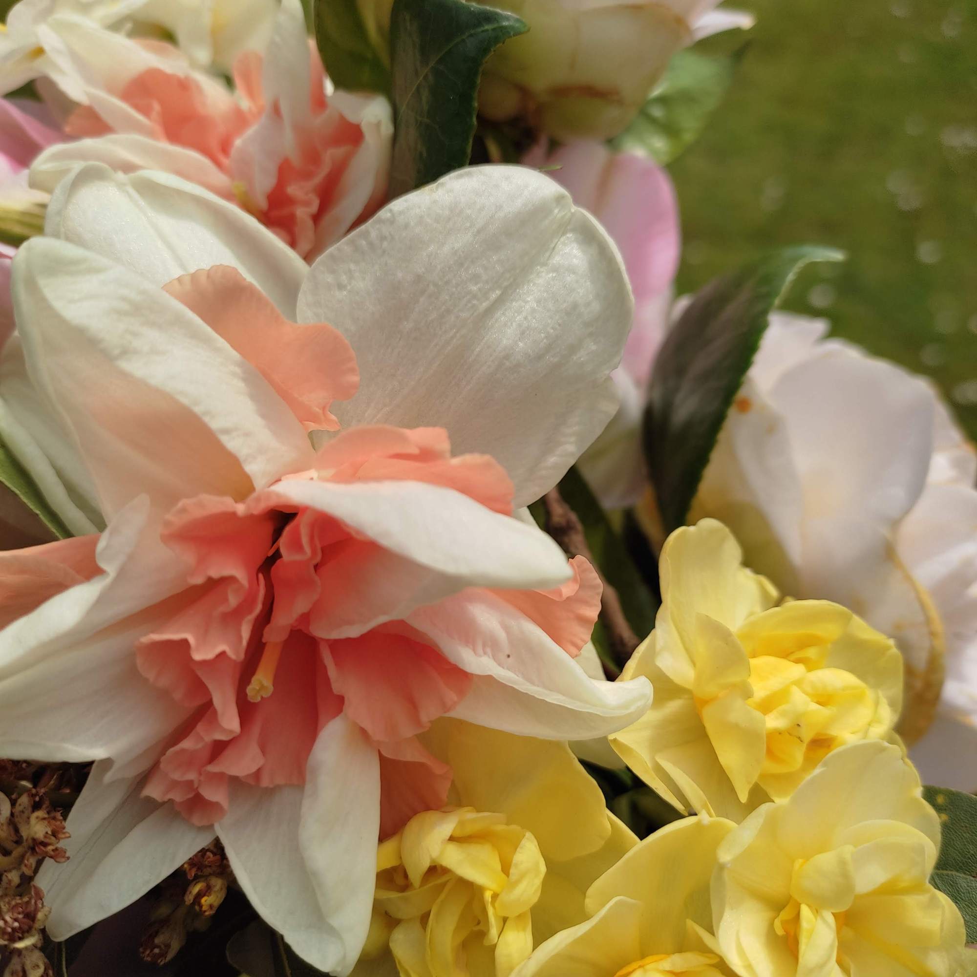 - 1 ramo di Camelia bianco panna o rosa cipria (potete usare una camelia “Ave Maria” o “Superba Nobilissima” o “Debutante“)