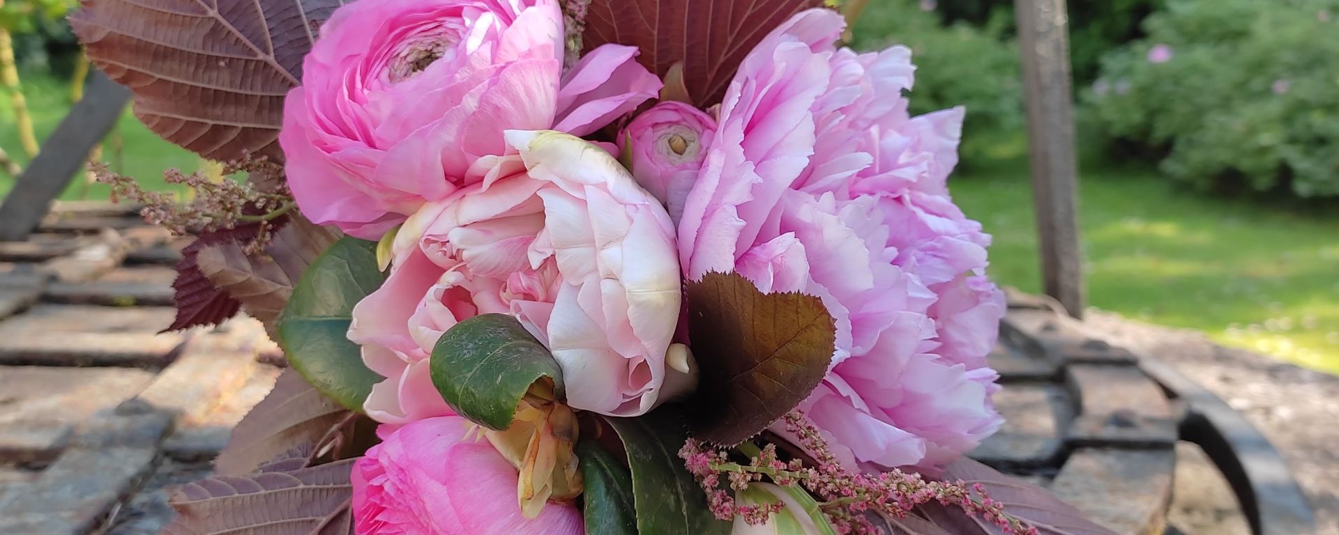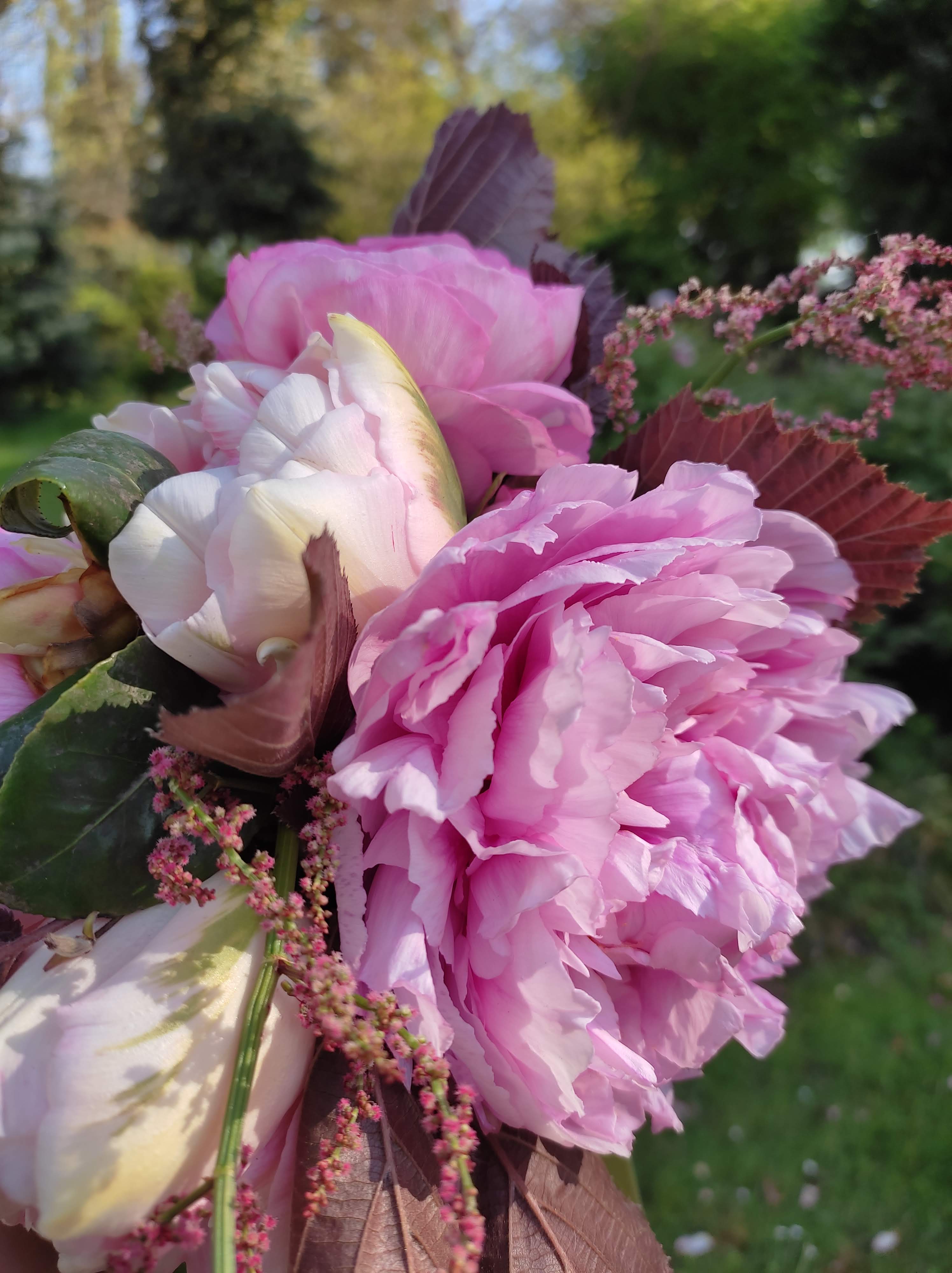 In questo tutorial vi guido nella creazione di un mini bouquet tondo con fiori primaverili. Ho utilizzato pochi fiori dalle corolle importanti sulle tonalità del rosa e un ramo di nocciolo per una nota di colore. Tutte le essenze utilizzate sono state raccolte in giardino o acquistate in una flower farm della zona*.