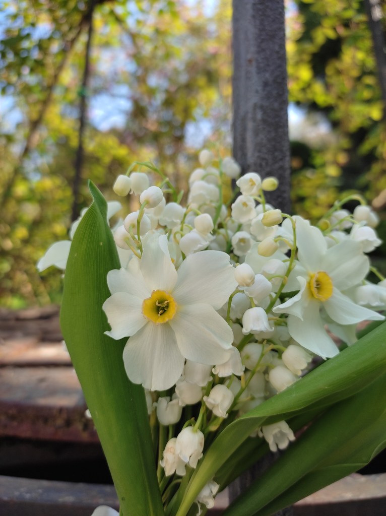 Mughetti associati a piccoli narcisi profumati.