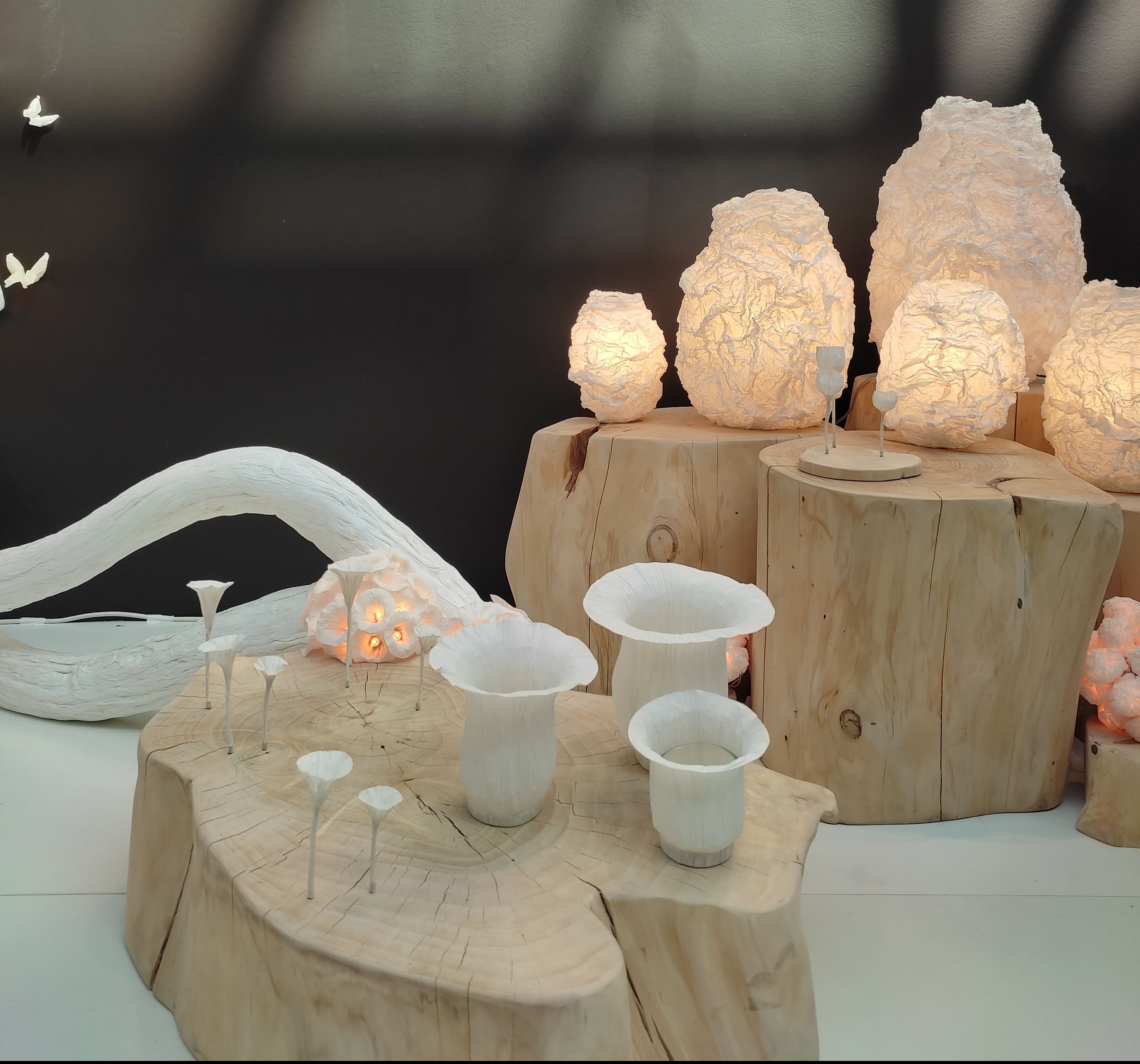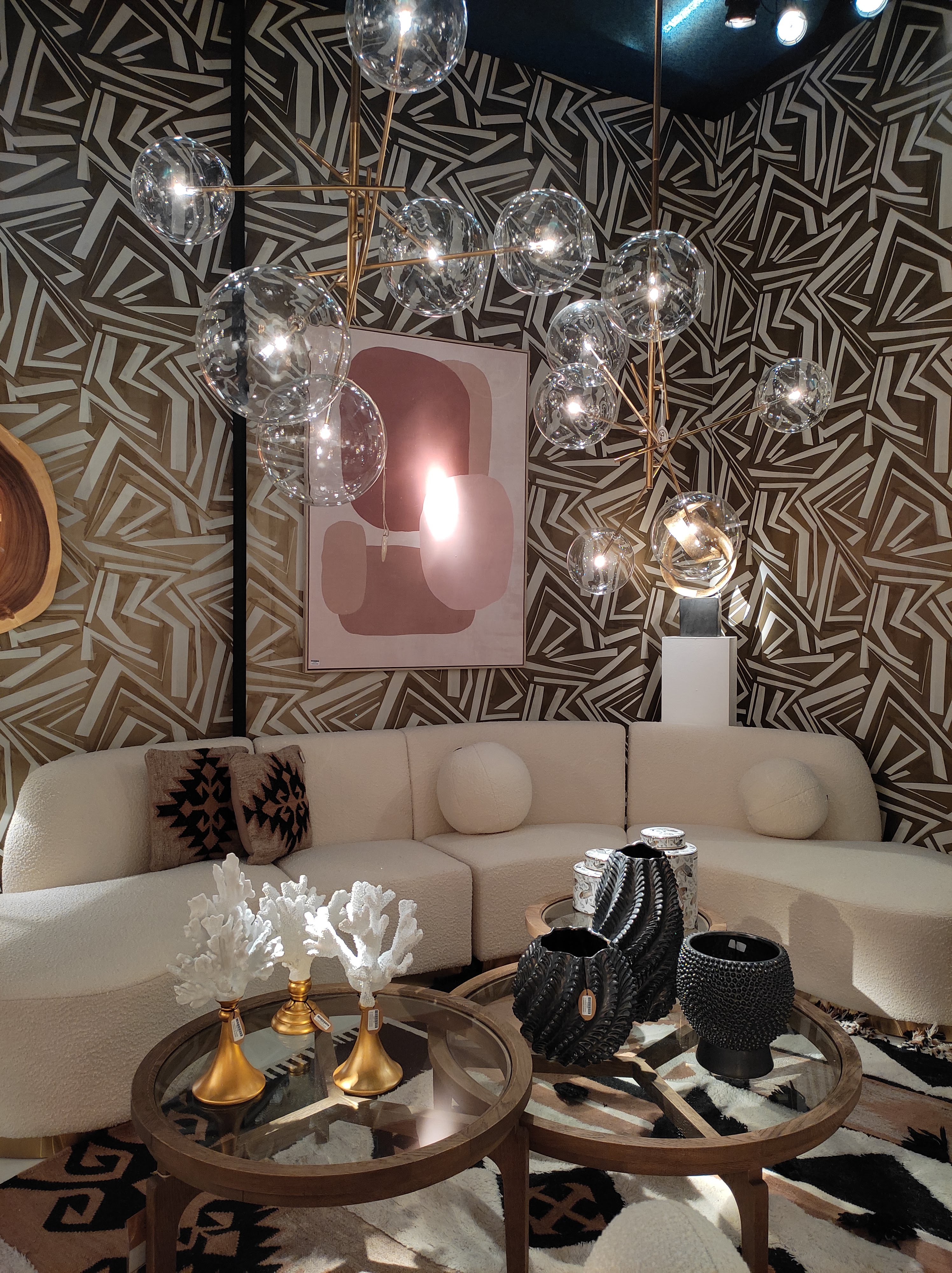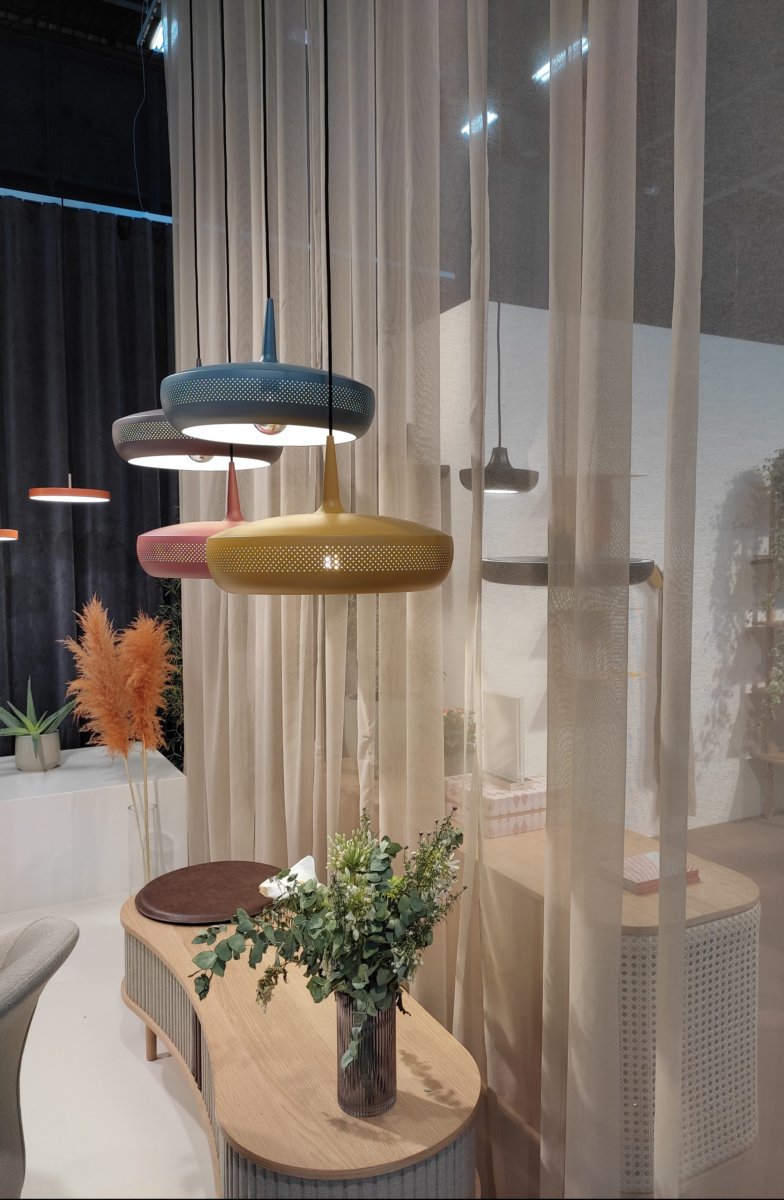 Un’altra tendenza che ho individuato al salone è la combinazione di colori pastello e materiali morbidissimi. Lampade in piuma dai colori tenui, poltroncine in lana bouclé, ceramiche mat realizzate a mano, runner in garza, e trasparenze color dell’acqua. Giallo pallido, albicocca, lilla, rosa polvere, verde salvia e azzurro, legno naturale e tessuti delicati sono le cifre stilistiche di questa tendenza, perfetta per creare angoli cosy e rilassanti.