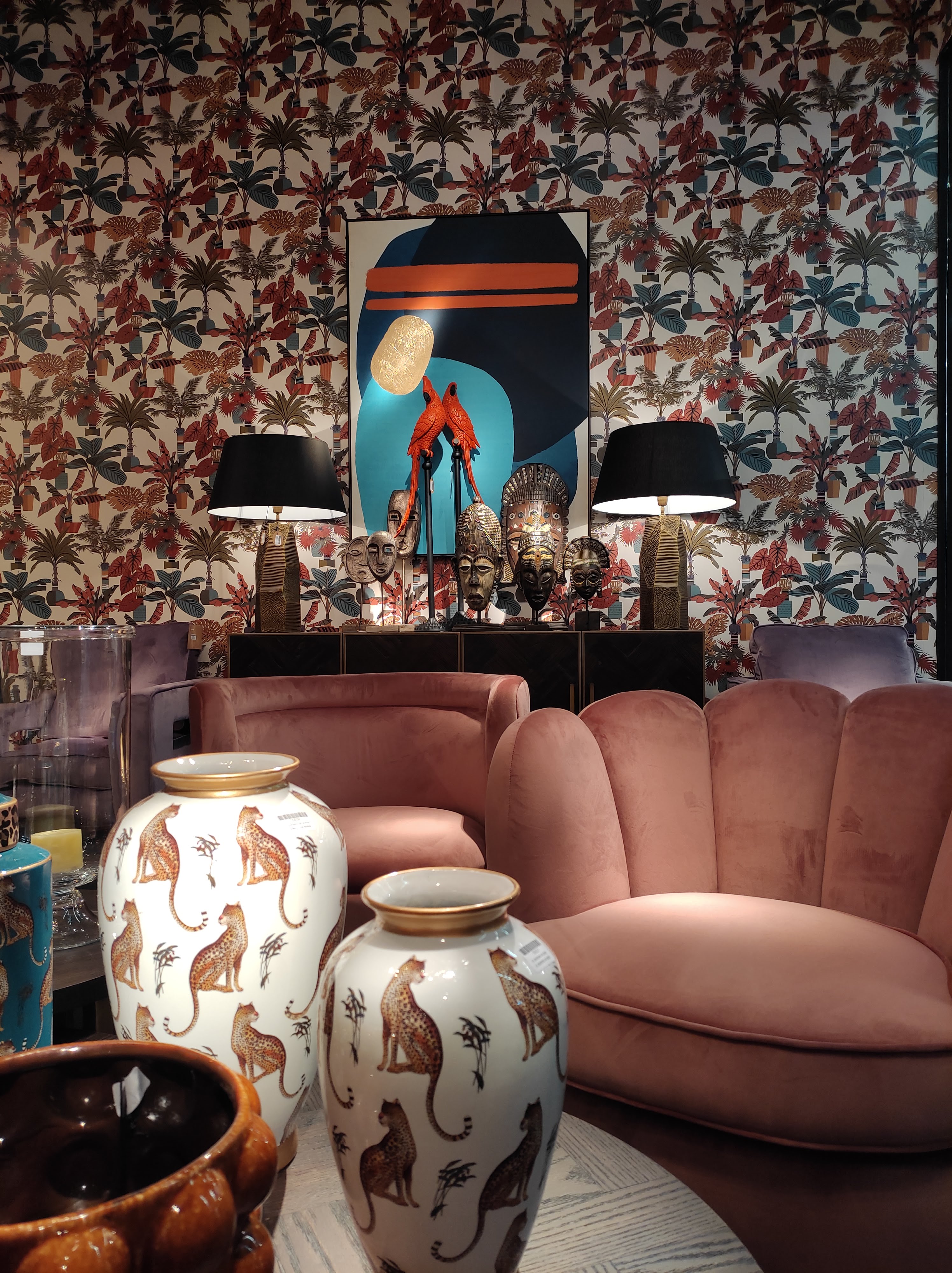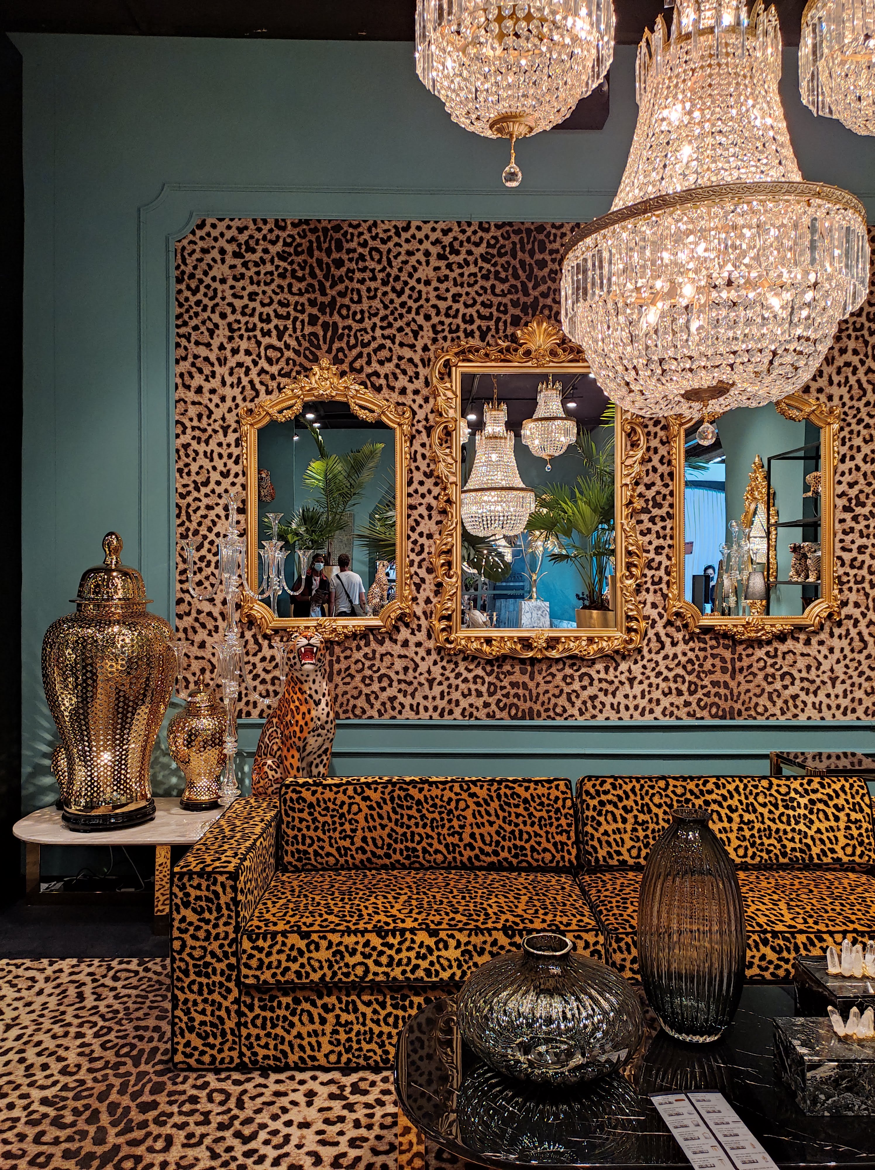 Sulla scia della moda jungle, già in voga da un paio d’anni, le grandi insegne dell’interior design propongono un esotismo esasperato, alla frontiera del kitsch, declinato su ogni tipo di supporto. Cifra stilistica di questa tendenza sono le palette di colori sgargianti, a volte proposti in maniera totalizzante, palme dorate, animali esotici e motivi leopardati. Tornano alla ribalta gli animali in ceramica a grandezza naturale o in miniatura, con funzione di candelabri o portalampada. I motivi leopardati si coniugano a cristalli e specchi barocchi mentre il blu royal e i vasi di ispirazione cinese riportano in auge la passione settecentesca per le chinoiseries. Il velluto è il materiale privilegiato per le sedute: poltrone e divani a conchiglia o con lo schienale arrotondato sono rivestiti di velours morbido e dai colori marcati (rosa, viola, terracotta, blu).
