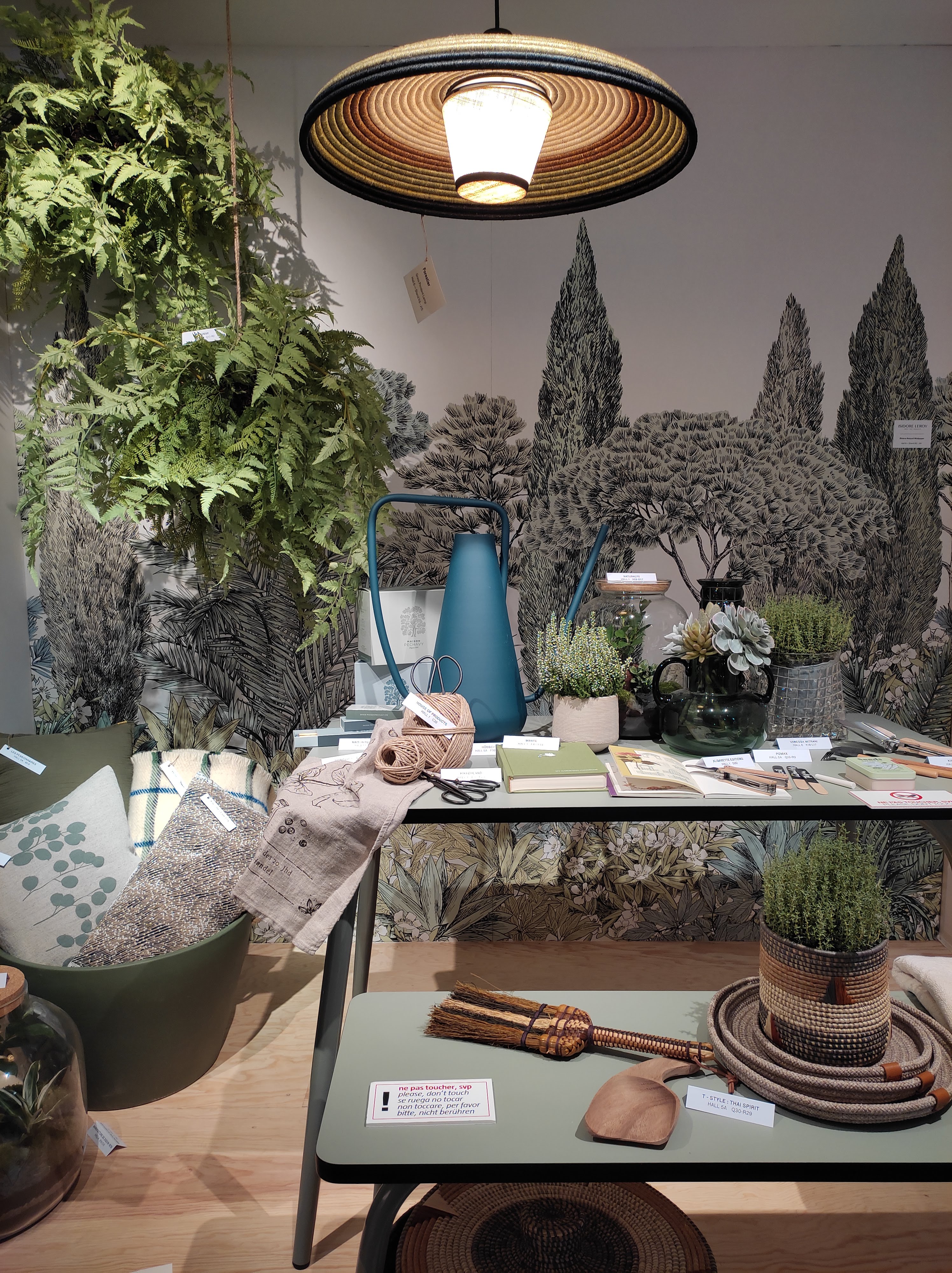 Non mi ha sorpreso il veder perdurare la tendenza green in molti degli stand presenti al salone: colori ispirati alla natura, dal verde salvia al muschio, dal grigio chiaro al legno; materiali riciclati; attenzione alla sostenibilità ambientale e uno stile creato a partire da materiali naturali come la canapa, il vimini e la paglia. Sono soprattutto i marchi scandinavi a innovare maggiormente e a valorizzare con gusto tessuti, stoviglie e arredi realizzati a partire da materiali riciclati. La tecnologia è al servizio dell’ambiente e della salute anche nel settore cook&share: pentole per cotture più sane, borracce, eco-cup, cannucce e contenitori alimentari sostituiranno finalmente e definitivamente l’usa e getta.