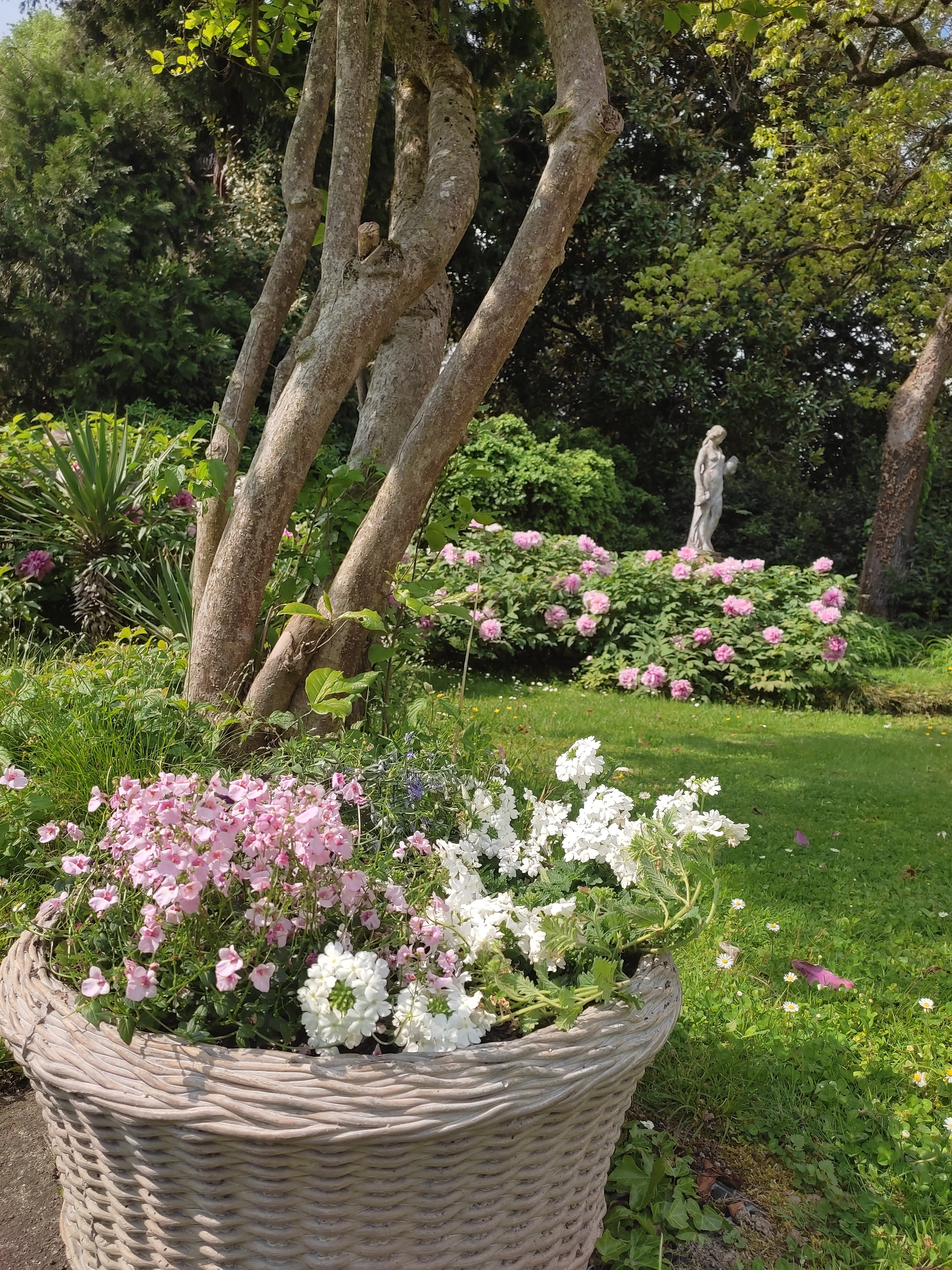 Per realizzare un cesto fiorito sui toni freddi dei rosa e degli azzurri dallo stile inconfodibilmente francese, ho utilizzato: